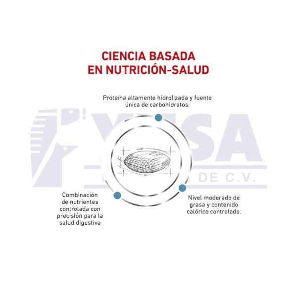 Contenido calórico moderado, 9.6% menos en comparación con Canine Hydrolyzed Protein HP seco, para ayudar a mantener el peso ideal.