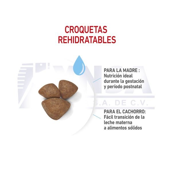Alimento seco para hembras de raza pequeña desde la 6ª a la 9ª semana de gestación y cachorros hasta los 2 meses de edad.